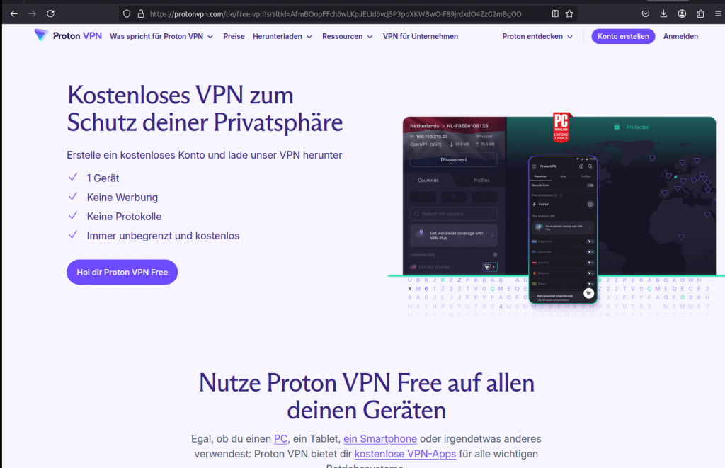 3. Proton VPN – Starker Fokus auf deine Privatsphäre bei der Nutzung des Tor-Netzwerks