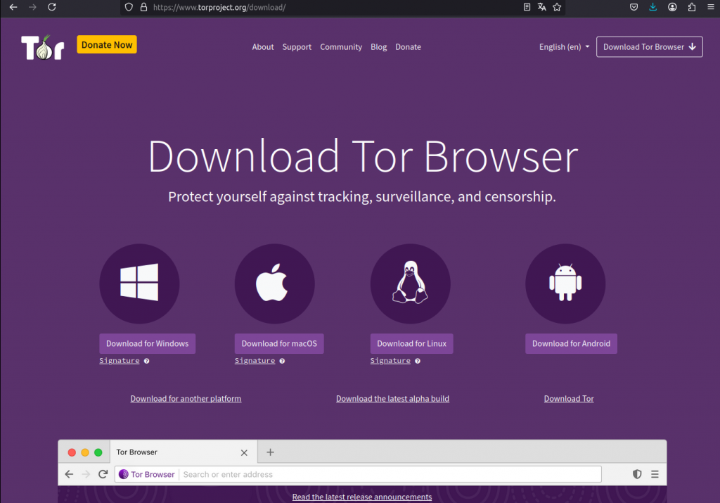 - Lade dir den Tor-Browser herunter. Stelle sicher, dass du den Tor-Browser von der der offiziellen Seite herunterlädst.